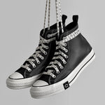 CHUCK 70 高幫經典黑武士不用多說,鞋型就是更挺,荔枝皮細膩有 紋理,質感直接拉滿,怎麼穿都不會過時。