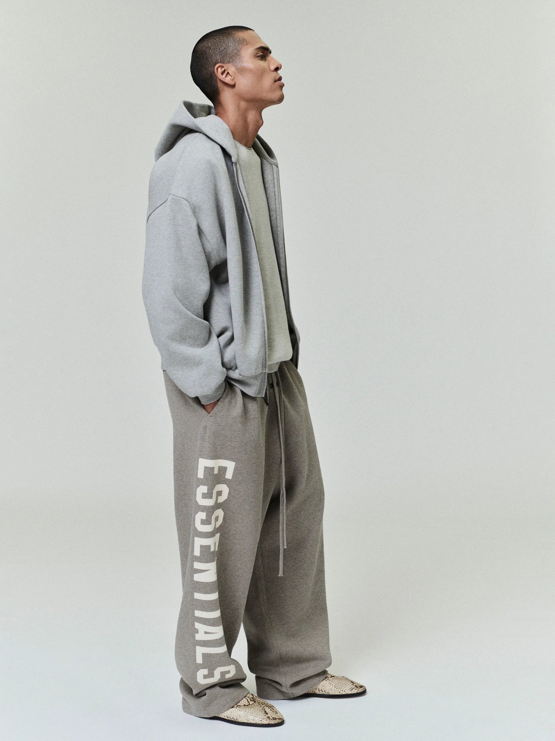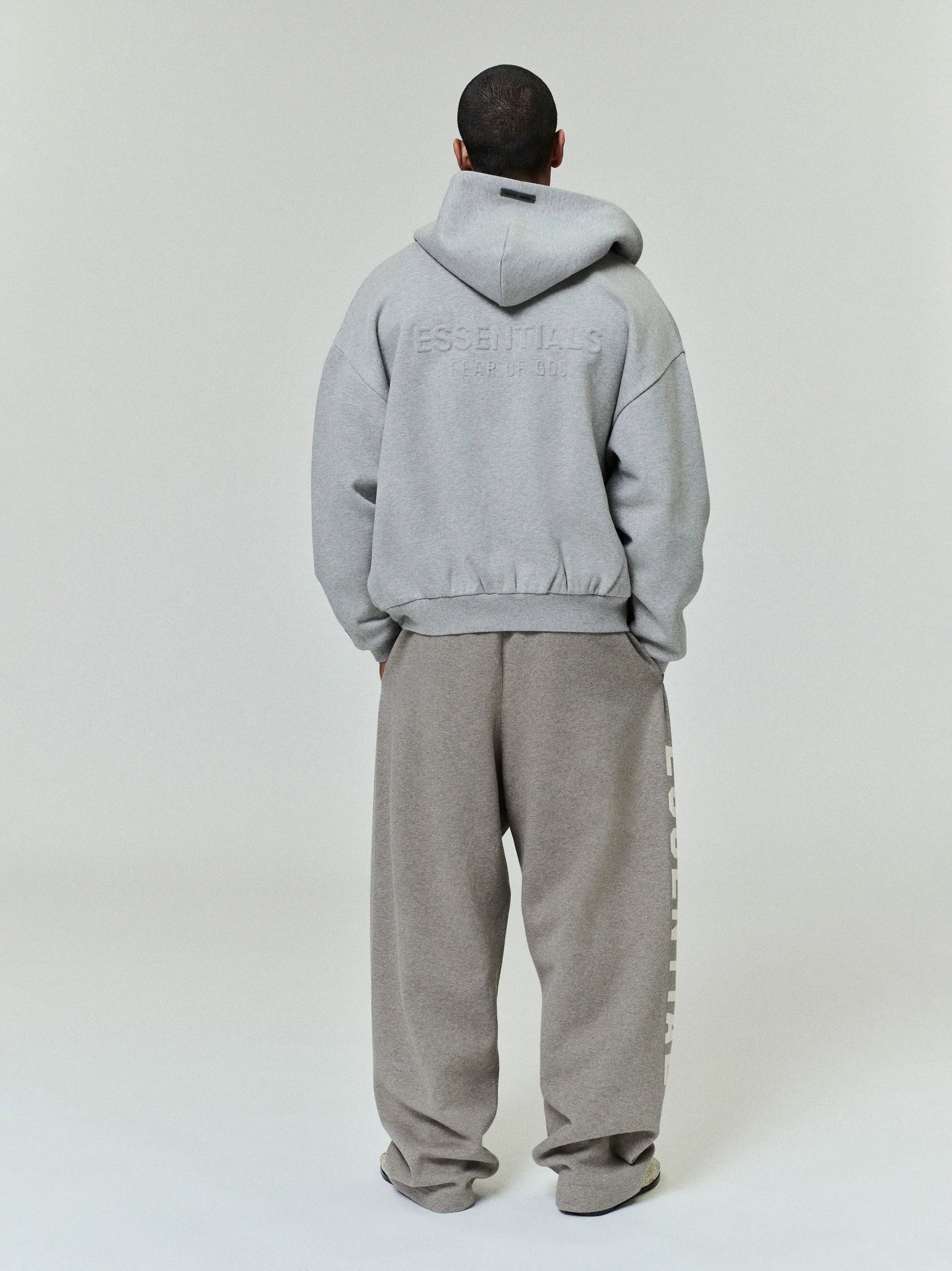 ESSENTIALS Embossed Classic Fleece Zip-Up Hoodie Warm Heather